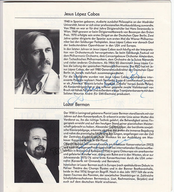 Berman, Lazar - Lopez-Cobos, Jesus - Signed Program Berlin 1984