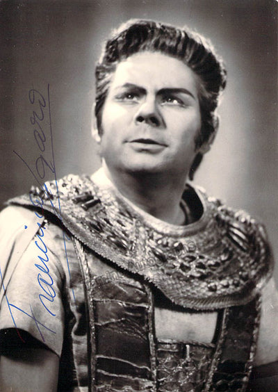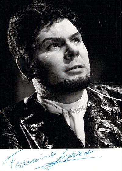Signed photograph, shown in role. Stamped on verso by photographer Sabine Toepffer, Munich. Size is 4 x 5.75 inches, very slight paper loss on top left edge, otherwise in very good condition.