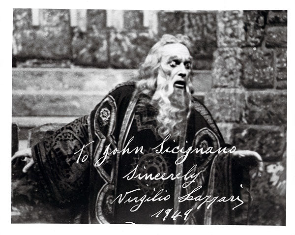 Signed photograph, shown in role in Montemezzi's L'Amore dei Tre Re, inscribed and dated in 1932. Photo by M. Camuzzi, La Scala, Milan. Size is 6.25 x 9 inches, mounting traces on verso, otherwise in very good condition.