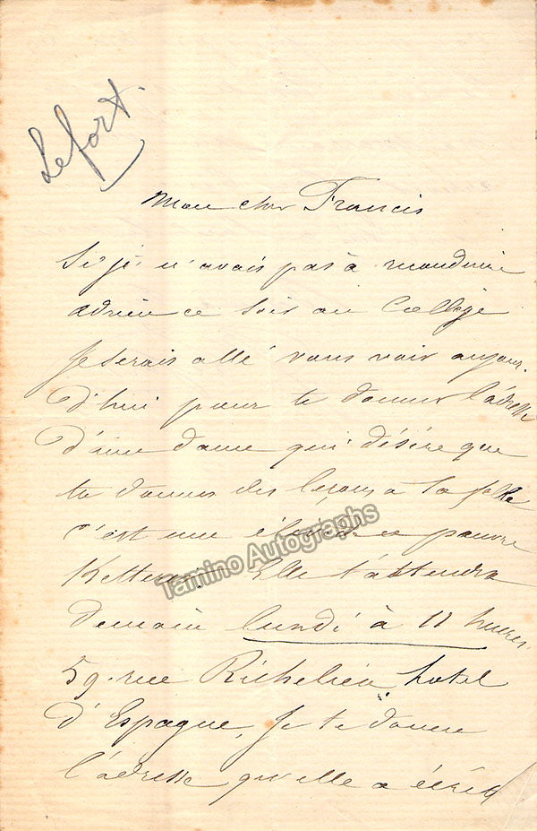Lefort, Jules - Autograph Letter Signed Lefort, Jules - Autograph Letter Signed