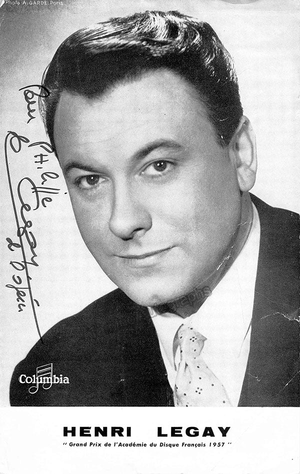French tenor (1920-1992), signed promotional photograph, shown as himself, inscribed. Size is 5.25 x 8.25 inches, several creases and bends, otherwise in good condition