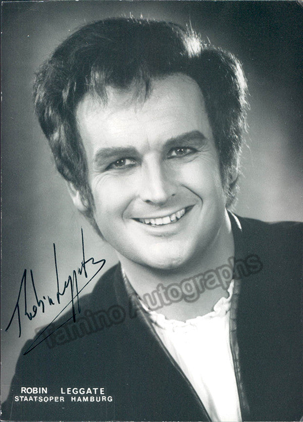 English tenor (b. 1946), signed photo, shown in role. Size is 4 x 5.75 inches. Stamped on verso by photographer Hans-Joachim Lieske, Hamburg.