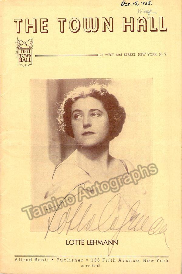 Lehmann, Lotte - Signed Program Town Hall 1938