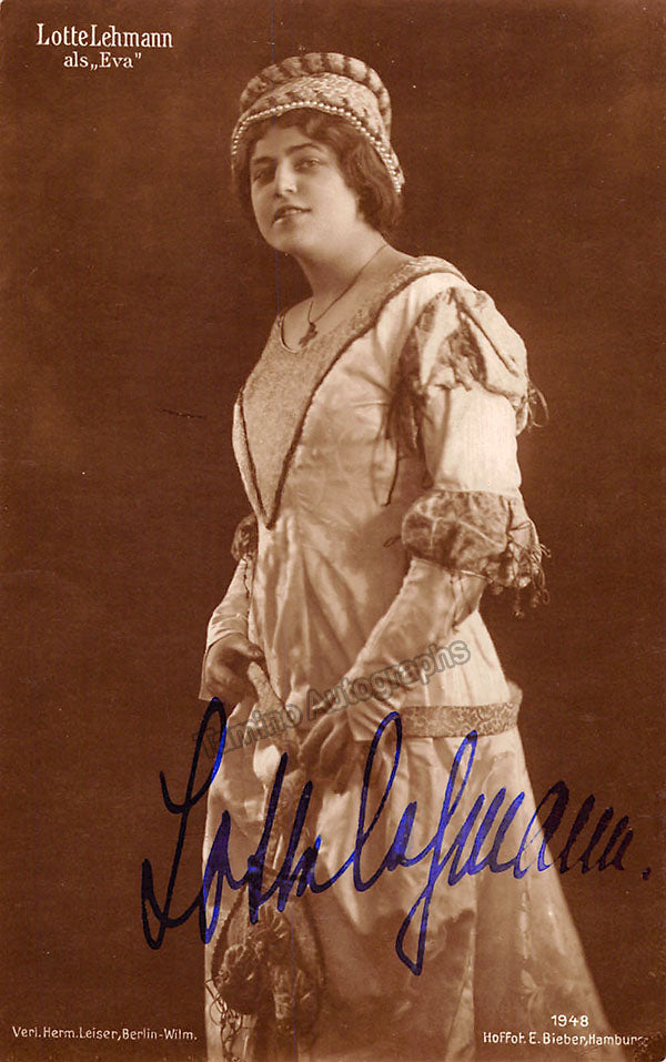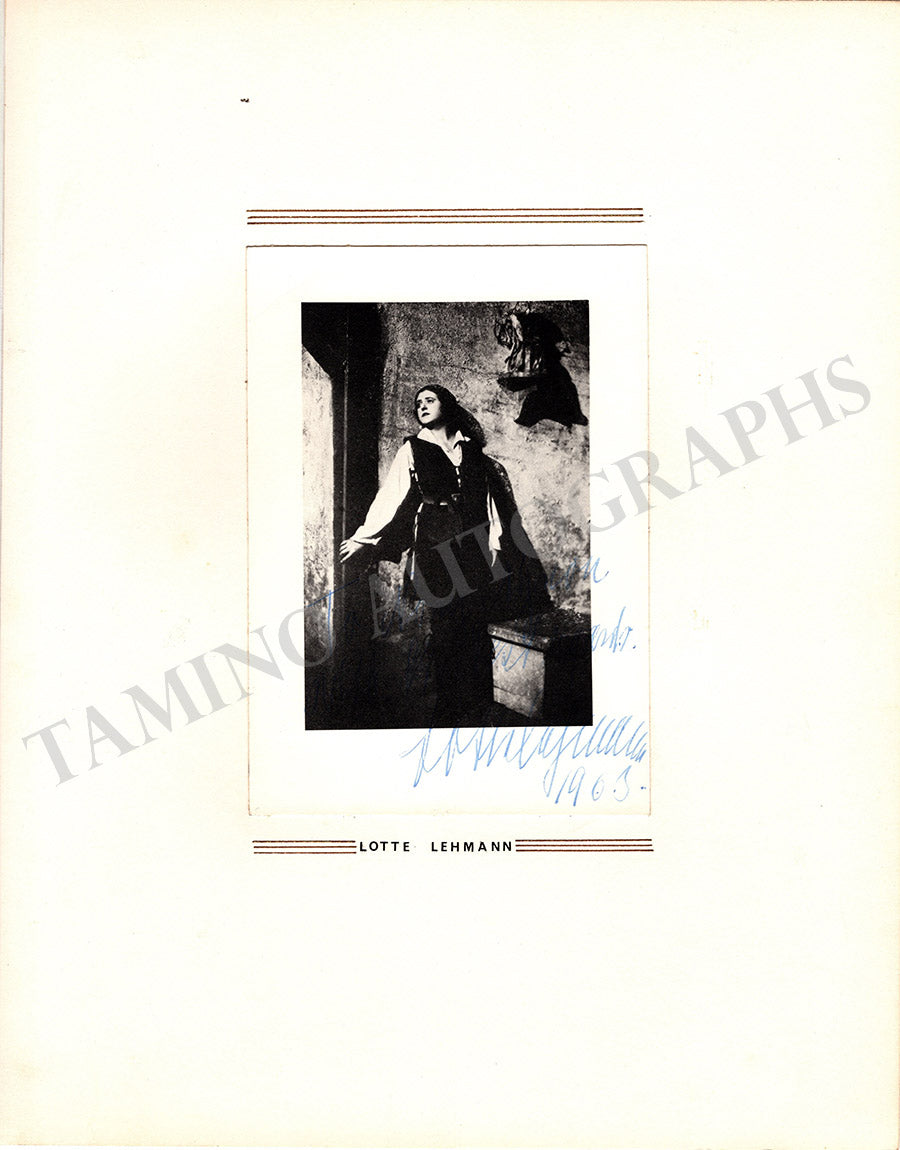 Fine black-and-white photo postcard signed by her mounted on hard cardboard, shown in Strauss' Der Rosenkavalier. Total size is 3.6 x 6.1 inches, in very good condition.