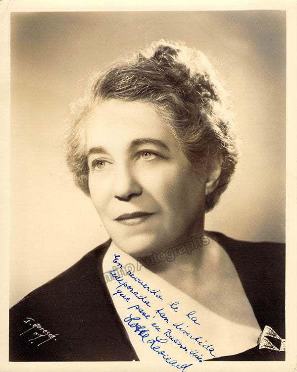 German concert soprano (1884-1976) known especially for her performances of the Bach and Handel repertoire, signed photograph, shown as herself, inscribed in Buenos Aires. Stamped on verso by photographer James Abresch, New York. Size is 8 x 10 inches, small creases on edges, otherwise in excellent condition.