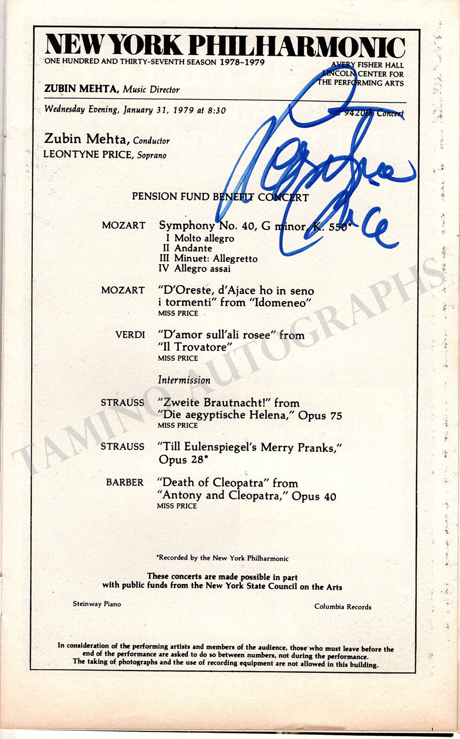 Price, Leontyne - Signed Program New York 1979