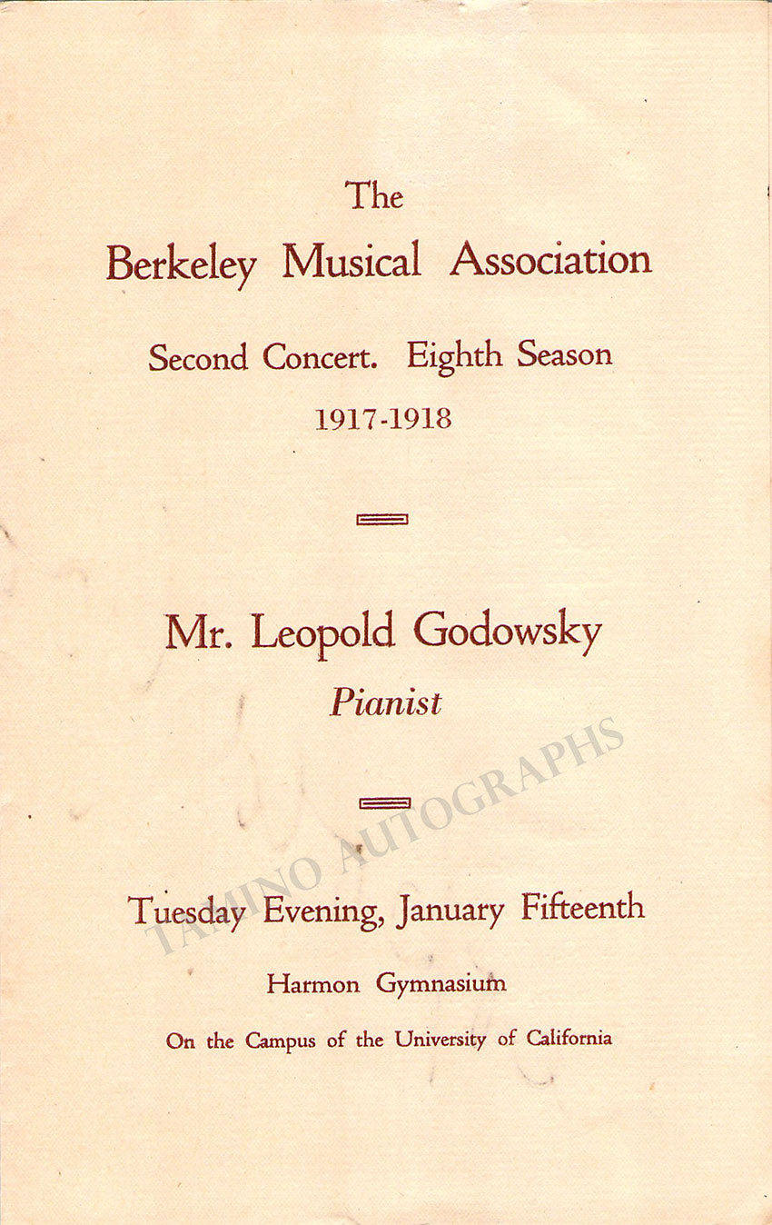 Godowsky, Leopold - Signed Program Berkeley 1918 Godowsky, Leopold - Signed Program Berkeley 1918