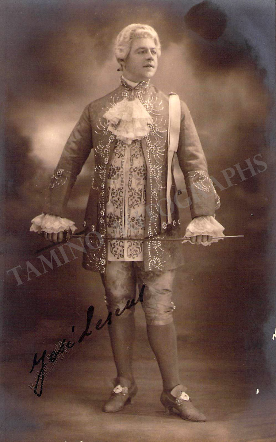 Belgian tenor, sang mostly in Gent and Antwerp, where he regularly appeared at the Royal Flemish Opera between 1936 and 1949. Signed photograph, shown in role (most likely Des Grieux in Massenet's Manon). Size is 3.5 x 5.5 inches, some silvering, otherwise in very good condition.
