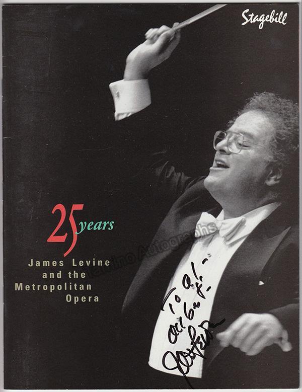 Program for a gala performance celebrating the famous American conductor's 25th anniversary with the Metropolitan Opera, in New York, April 27th, 1996; signed and inscribed by him on the front cover.  Program is full of photographs and articles related to the life and works of the conductor.  Size is 8.25 x 10.75 inches, 48 pages plus covers, in excellent condition.