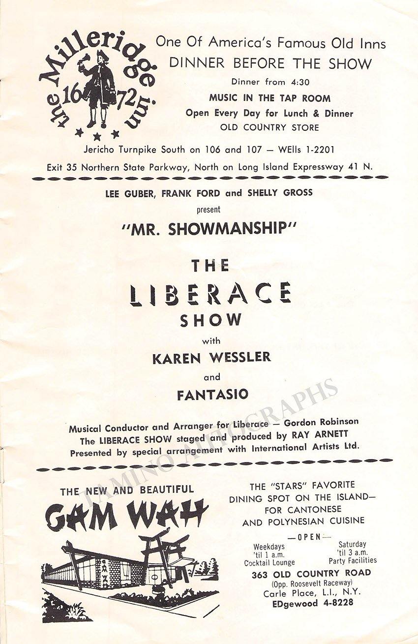 W. Valentino Liberace Autograph - Signed Program NY 1966
