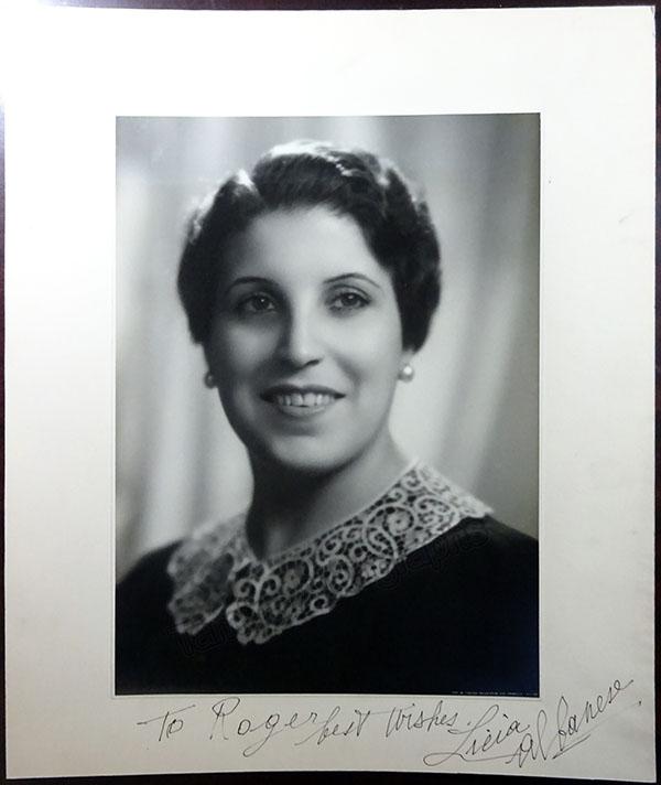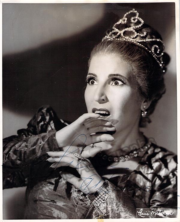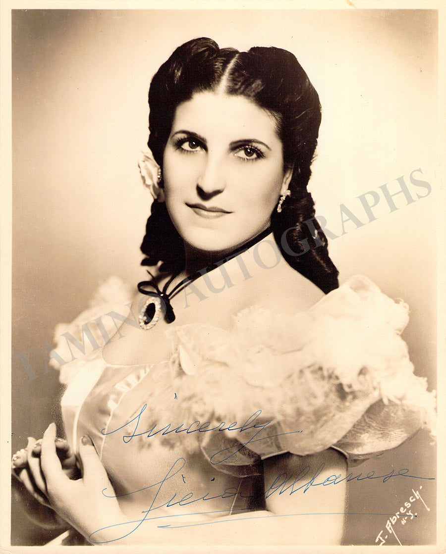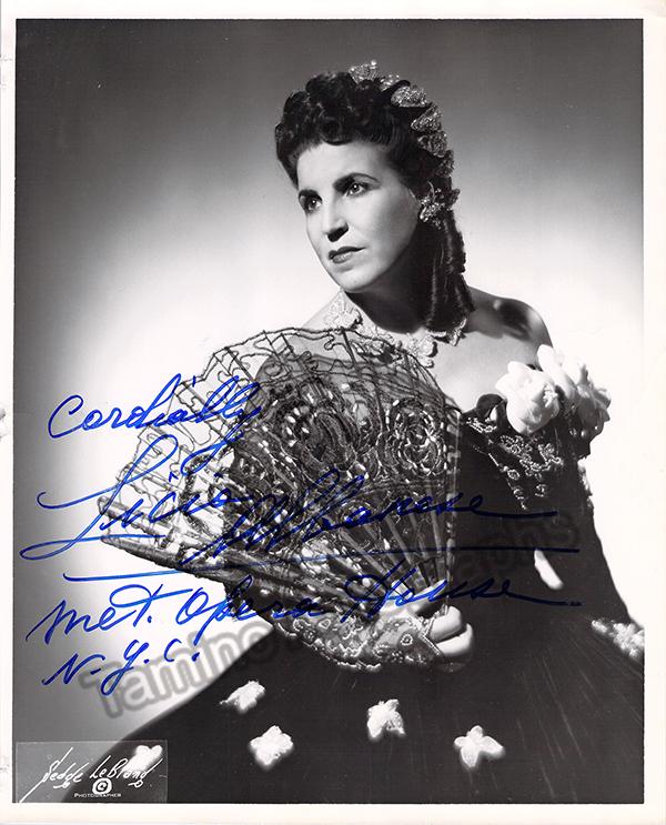 Signed photo, shown in role (probably in La Traviata). Size 8 x 10 inches, in excellent condition.