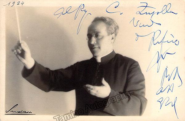 Signed photo, dated by him in 1924, inscribed. Hand signed on front and stamped on verso by photographer Sudak, Teatro Colon, Buenos Aires. Size is 4.5 x 7 inches, mounting traces on verso, but in overall good condition.