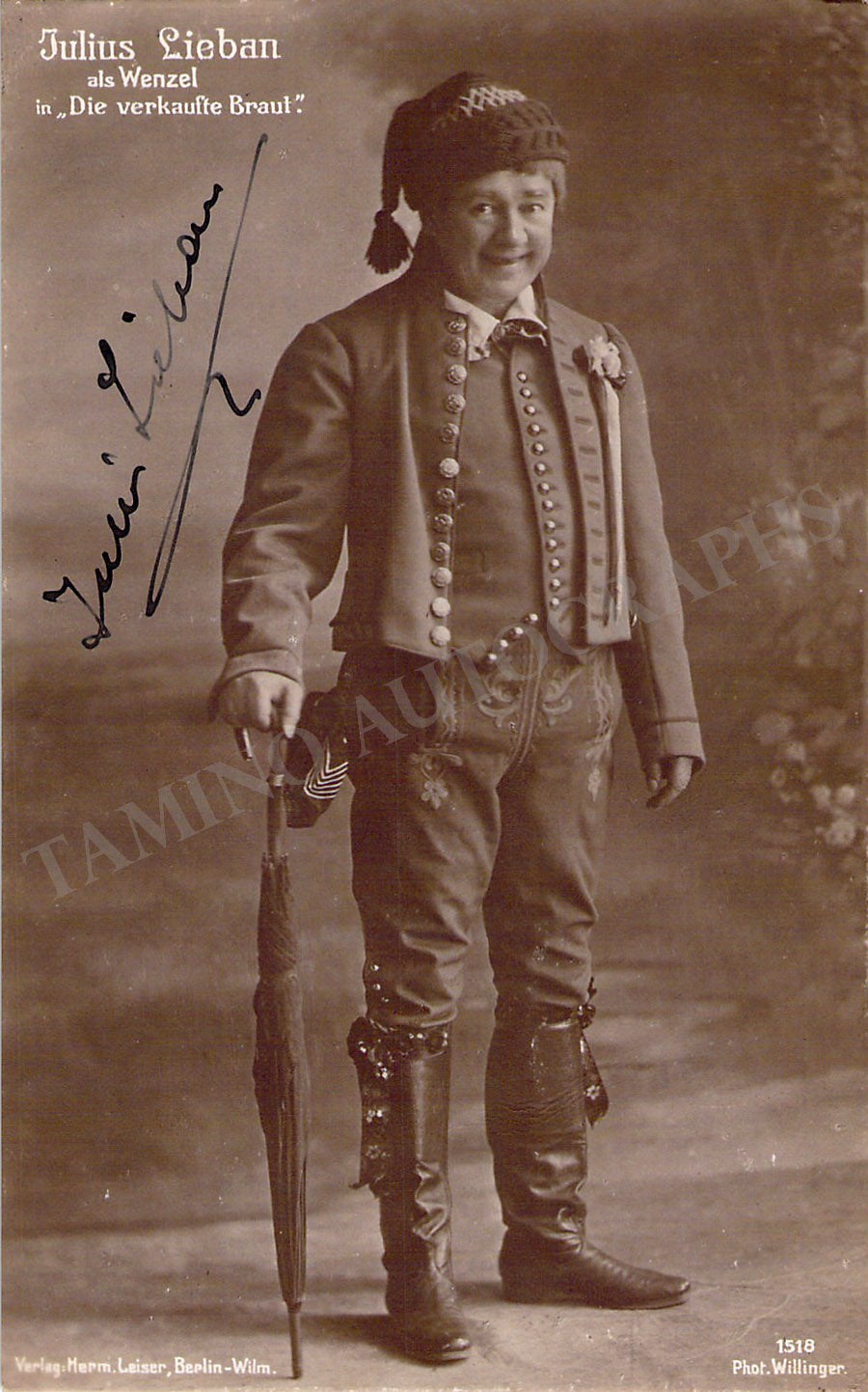 Beautiful black-and-white photo postcard signed by him, shown as Wenzel in Smetana's opera The Bartered Bride. Size is 3.4 x 5.3 inches, in excellent condition.