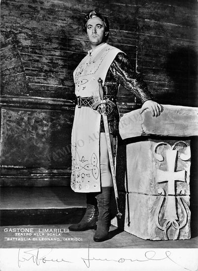 Signed photograph, shown as Arrigo in Verdi's Il Battaglia di Legnano. Size is 5 x 7 inches, in very good condition.