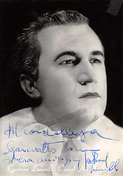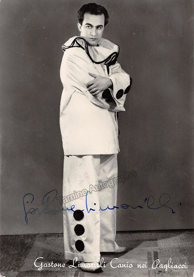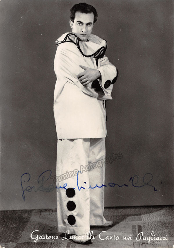 Signed postcard photograph, shown as Canio in Leoncavallo's I Pagliacci, inscribed. Size is 4 x 5.75 inches, in excellent condition.