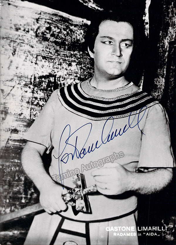 Signed photograph, shown in the title role of Giordano's Andrea Chenier. Size is 5 x 7 inches, in very good condition.