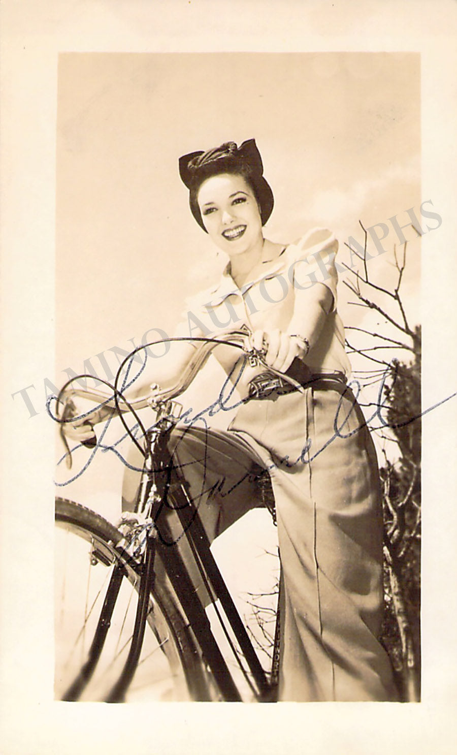 Fine sepia photograph signed by her. Size is 2.5 x 4.1 inches, in excellent condition.
