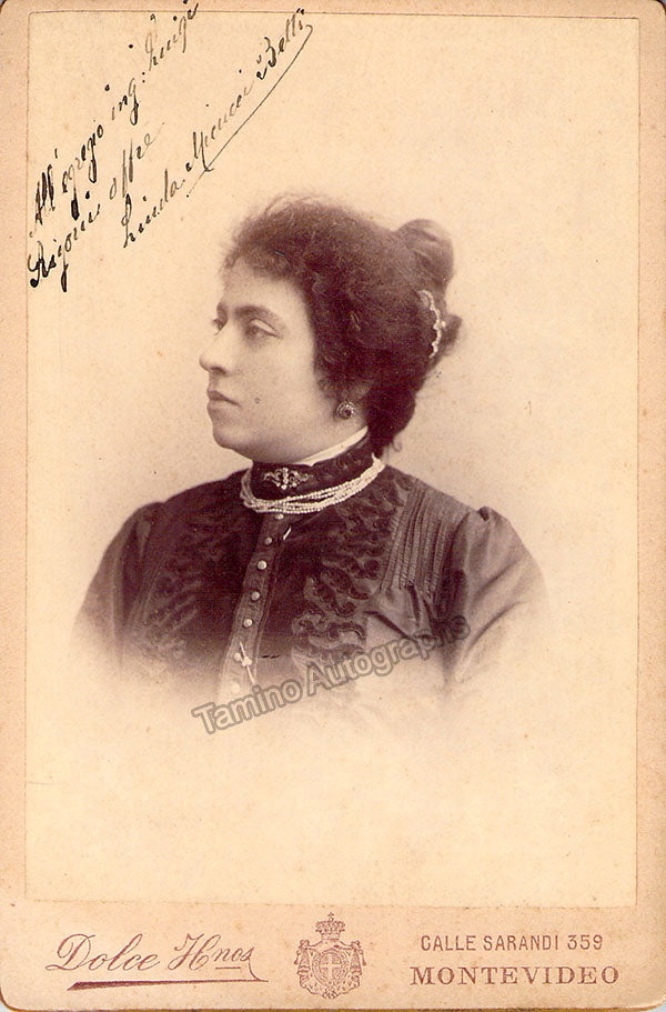 Fine vintage cabinet photo signed and inscribed by her with a short sentiment; photo by Dolce Brothers (Montevideo). Size is 4.25 x 6.4 inches, in very good condition.
