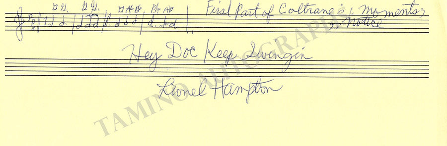 4-bar autograph music quote signed by him with a short sentiment. Size is 8.75 x 2.9 inches, in excellent condition.