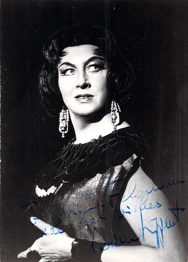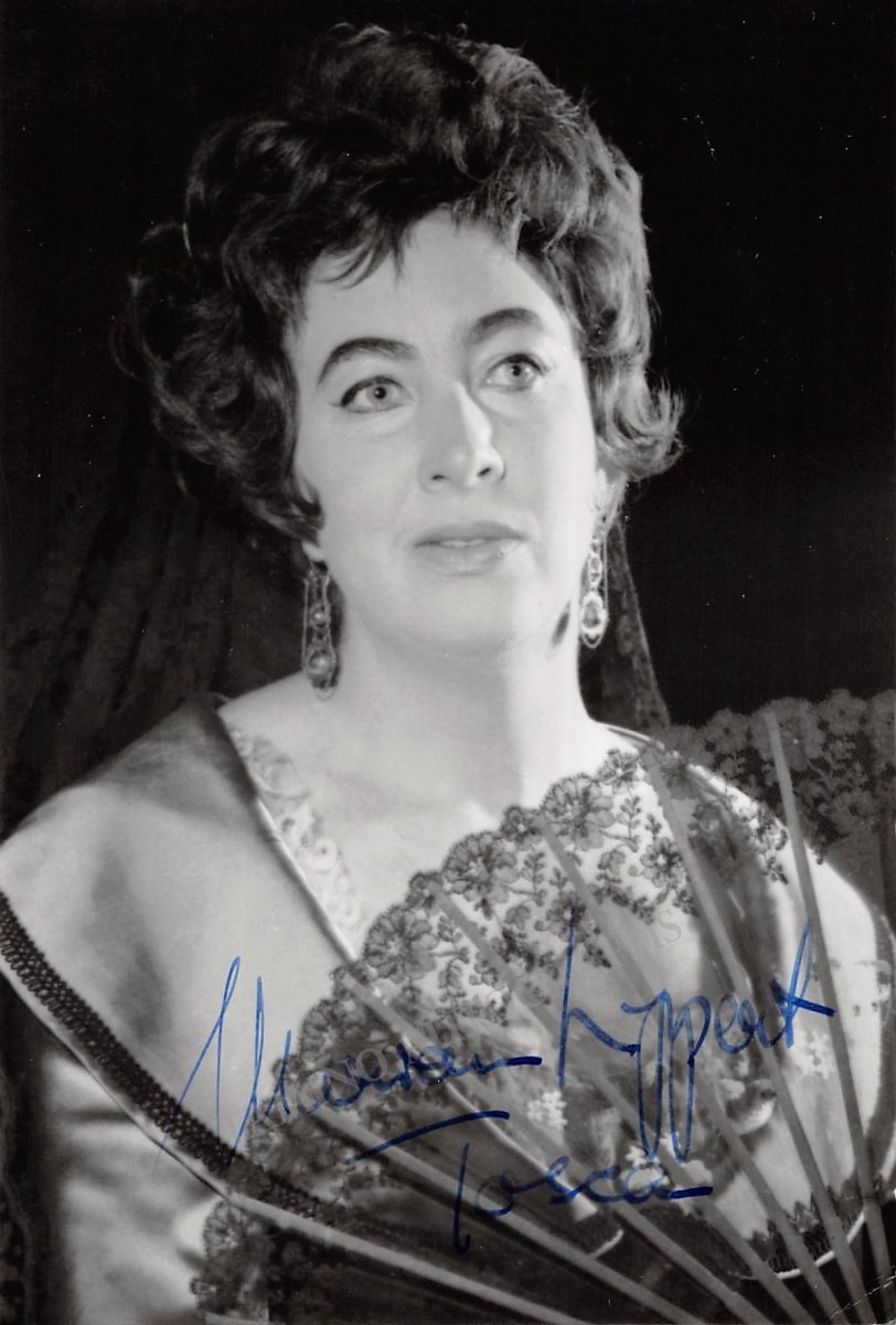 Signed photo, shown in title role of Puccini's Tosca. Size is 5 x 7 inches, slight wear on edges but otherwise in excellent condition.
