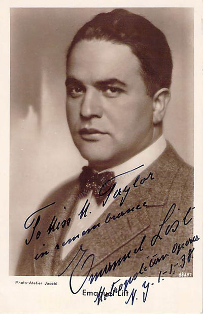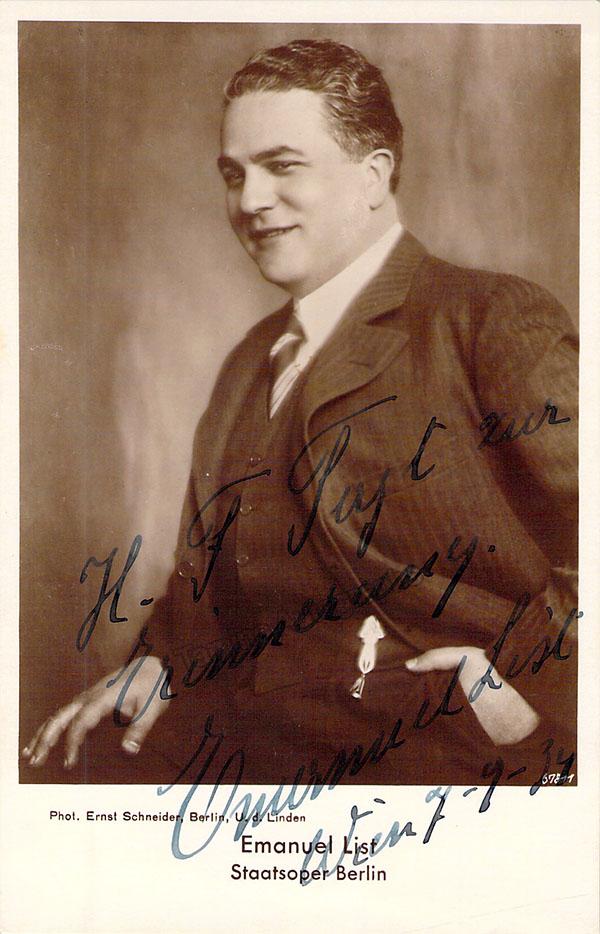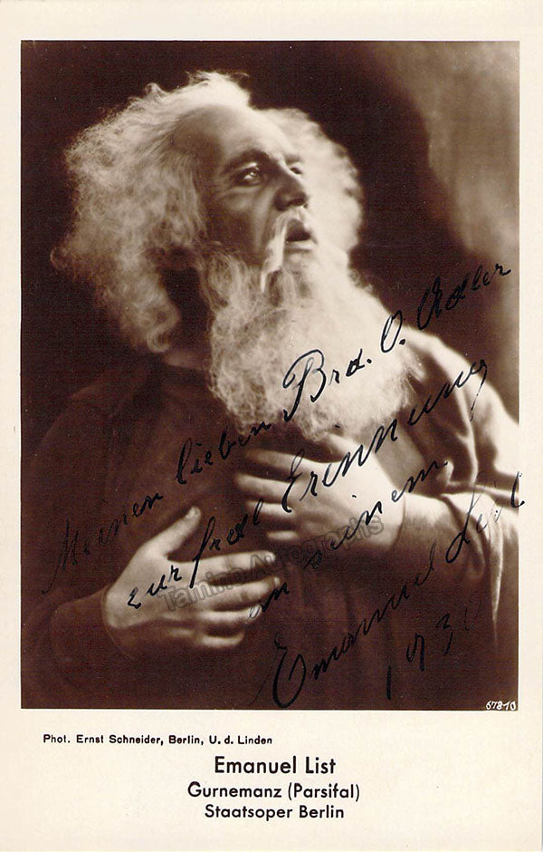 Signed postcard photograph, shown as Gurnemanz in Wagner's Parsifal, inscribed and dated in 1931. Photo by Ernst Schneider, Berlin. Size is 3.5 x 5.5 inches, in excellent condition.
