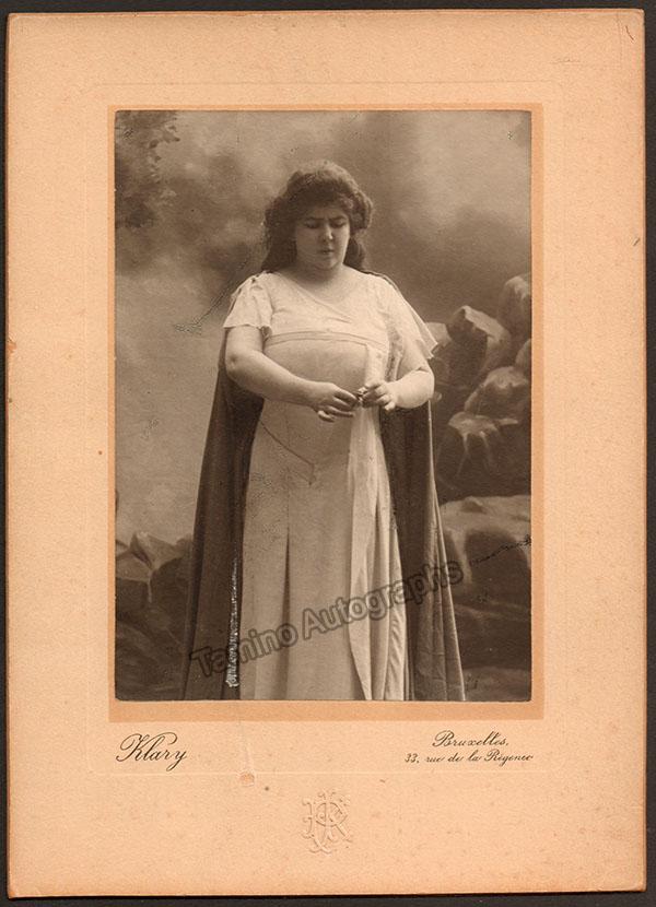 Russian-born French soprano (1860-1936), particularly associated with Wagnerian roles and very famous in her time. Unsigned larger size photo, shown in role (prob. as Brunnhilde in Die Walkure). Photo by Klary, Brussels. Size is 6.25 x 8.5 inches, in excellent condition.