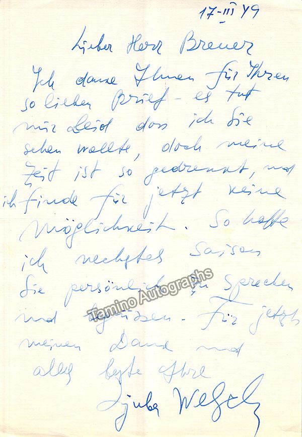 Welitsch, Ljuba - Autograph Letter Signed 1949
