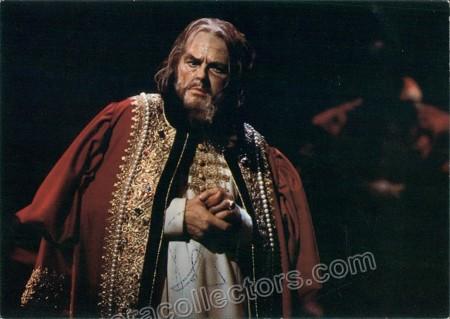English bass (b.1940).  Signed photo postcard shown as Boris Godunov in the opera of the same name by Mussorgsky, also signed on verso with a sentiment, at Royal Opera House.  Size is 5.75 x 4 inches, in excellent condition.