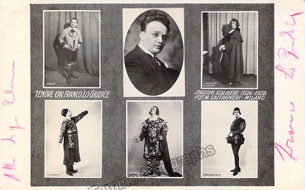 Italian tenor (1893-1990), signed photo postcard, shown both as himself and in a panorama of five roles. Inscribed. Size is 5.1 x 3.2 inches with some wear at edges but otherwise in good condition.