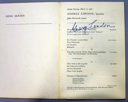 Signature on program. Metropolitan Museum of Art. March 12 1967. Recital. 22.5 x 15 cm, 4 pages. Very good condition.