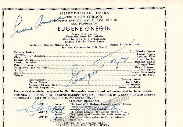 London, George - Amara, Lucine - Tozzi, Giorgio - Signed Program Clip Eugene Onegin 1958