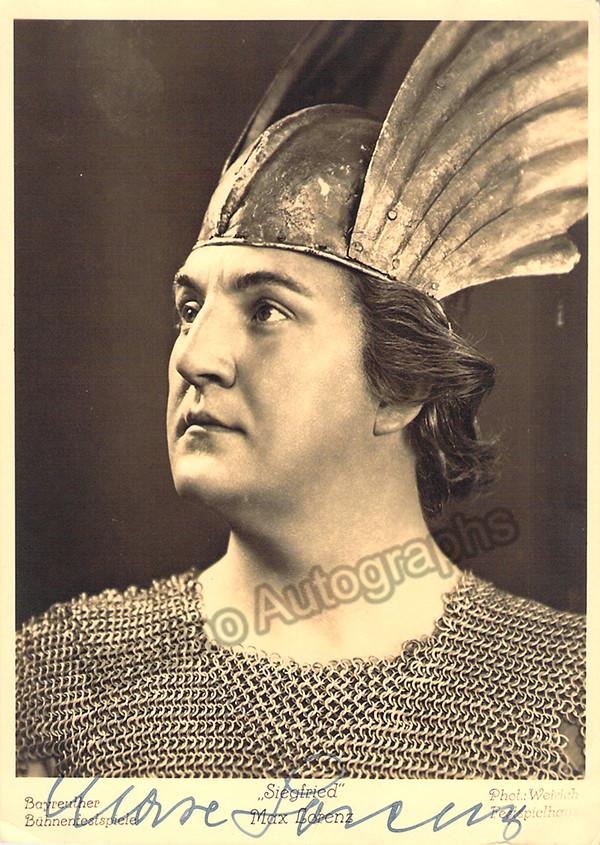 German tenor (1901-1975), signed photo postcard, shown in the title role as Siegfried in Bayreuth Festival. Size is 4 x 5.75 inches.
