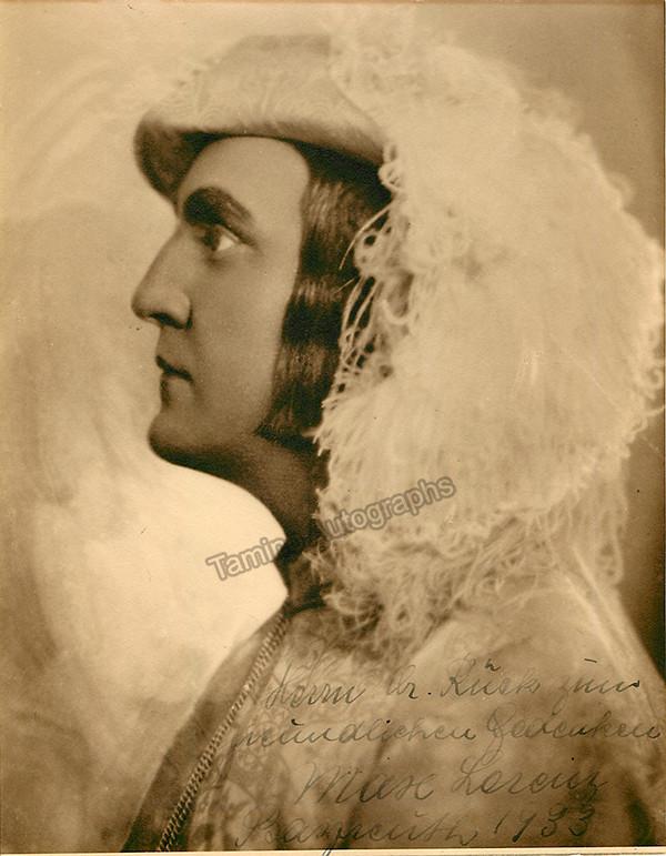 Large signed photo, shown in role, dated in Bayreuth in 1933. Size is 8.5 x 11 inches, in excellent condition.