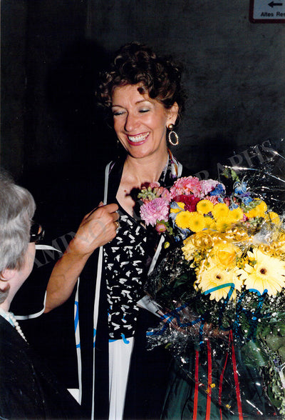 Nice casual color photograph signed by her, dated on verso in September 1993. Size is 6.75 x 4.75 inches, in excellent condition.