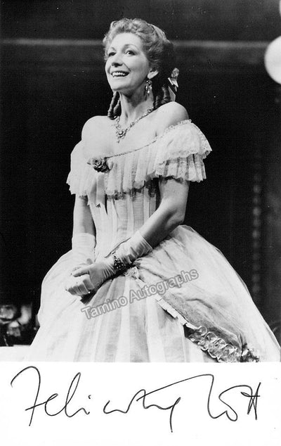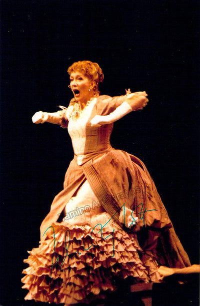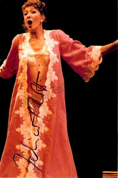 Nice black-and-white photograph signed by her, shown probably in Strauss' opera Intermezzo. Size is 3 x 5 inches, ink writing on verso, in excellent condition.