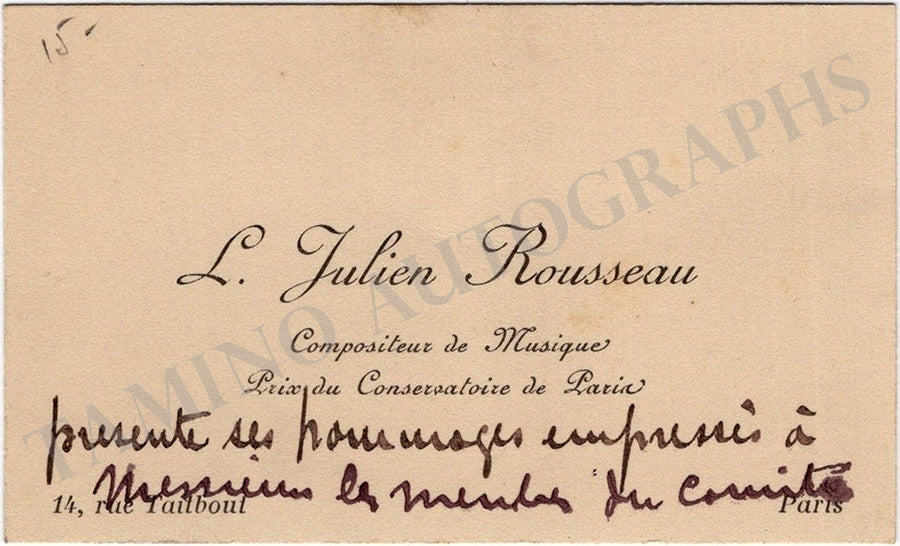 Rousseau, Louis Julien - Autograph Note Signed Rousseau, Louis Julien - Autograph Note Signed