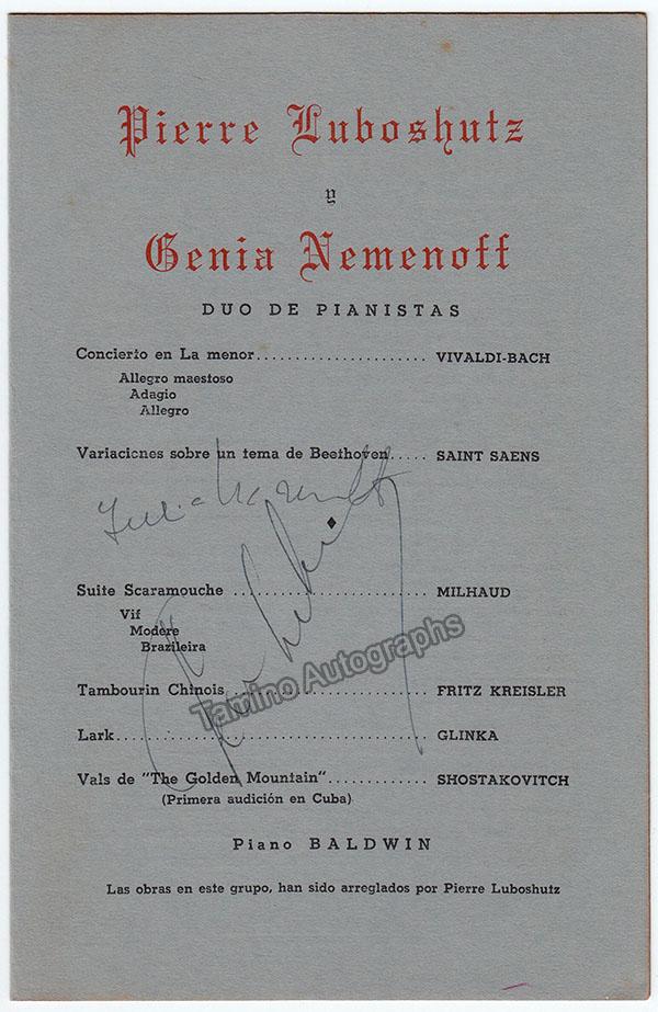 Luboshutz, Pierre - Nemenoff, Genia - Signed Program Havana 1949 - Tamino Luboshutz, Pierre - Nemenoff, Genia - Signed Program Havana 1949 - Tamino