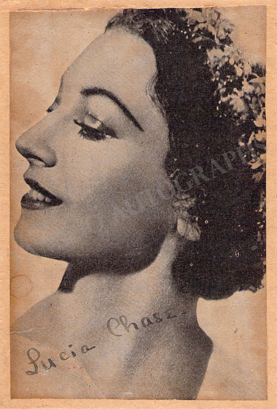Fine half-tone photograph signed by her and mounted on hard cardboard. Total size is 3.2 x 4.8 inches, in very good condition.