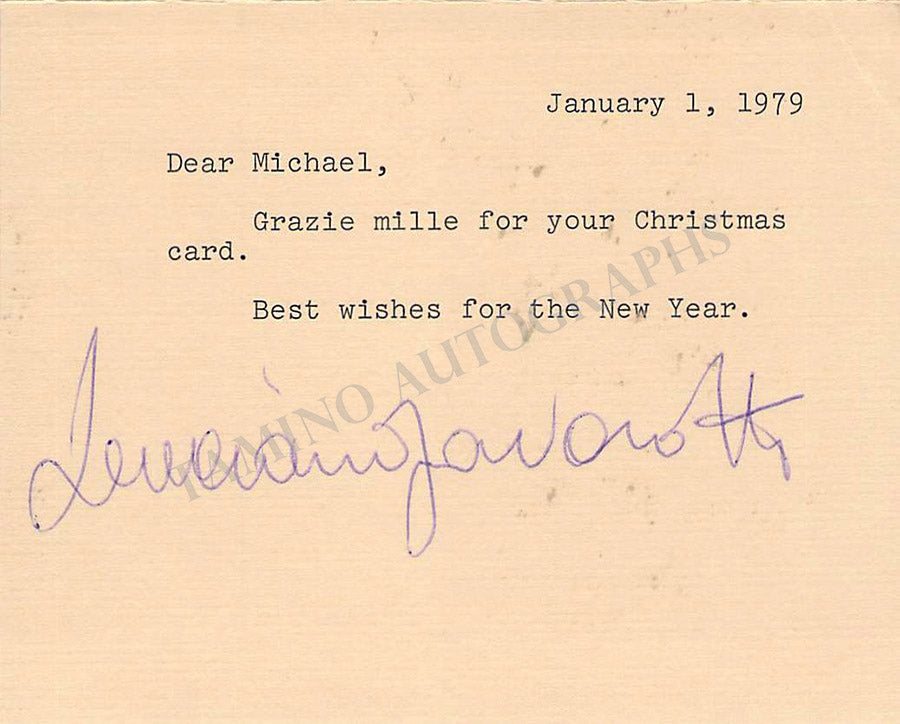 New Year's Greeting Card with a typed message signed by him. Size is 5.25 x 4.1 inches, in excellent condition.