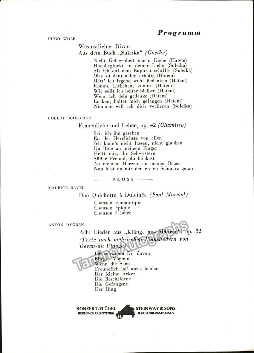 Christa Ludwig and Walter Berry signed recital program, Berlin, April 8th, 1963. Size is 5.75 x 8 inches, excellent condition.