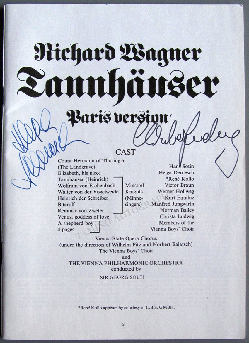 Booklet for a recording of Tannhauser, signed by Christa Ludwig and Helga Dernesch - Size is 5.75 x 8.25 inches