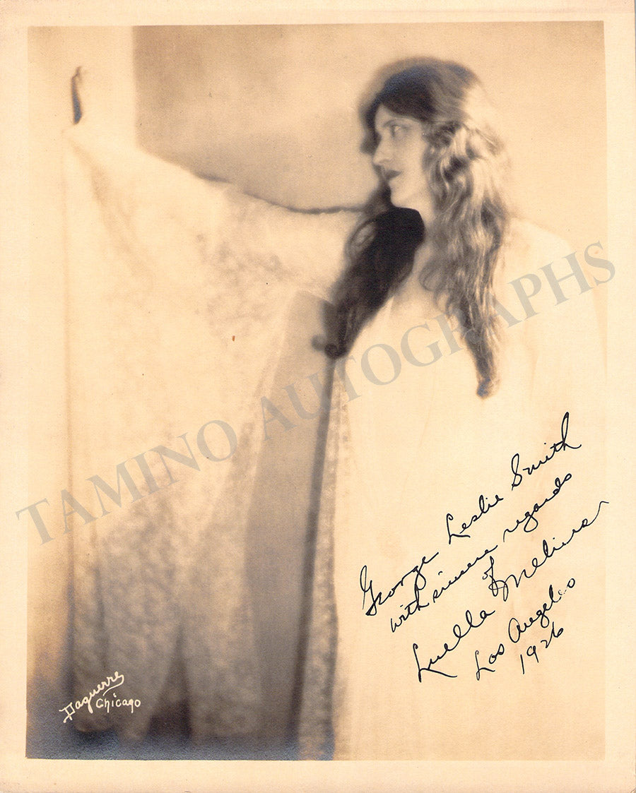 Fine sepia photograph signed and inscribed by her with a short sentiment dated in Los Angeles, 1926; a photo by Daguerre (Chicago). Size is 7.8 x 9.9 inches, in excellent condition.