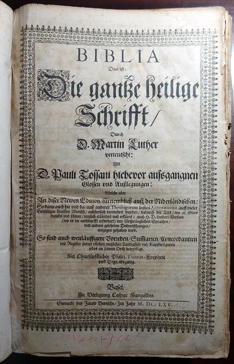 Lutheran German Bible, Basel 1665 - "Biblia Das Ist: Die Ganze Heilige