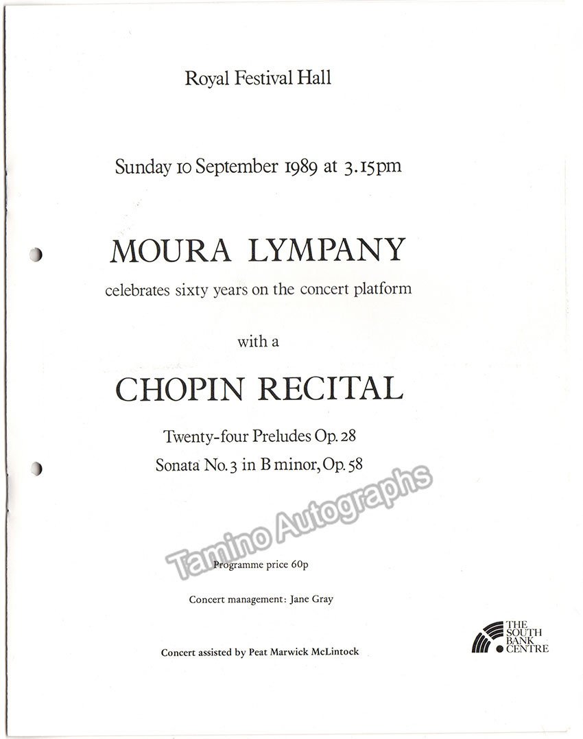 Lympany, Moura - Signed Program London 1989 - Tamino Lympany, Moura - Signed Program London 1989 - Tamino