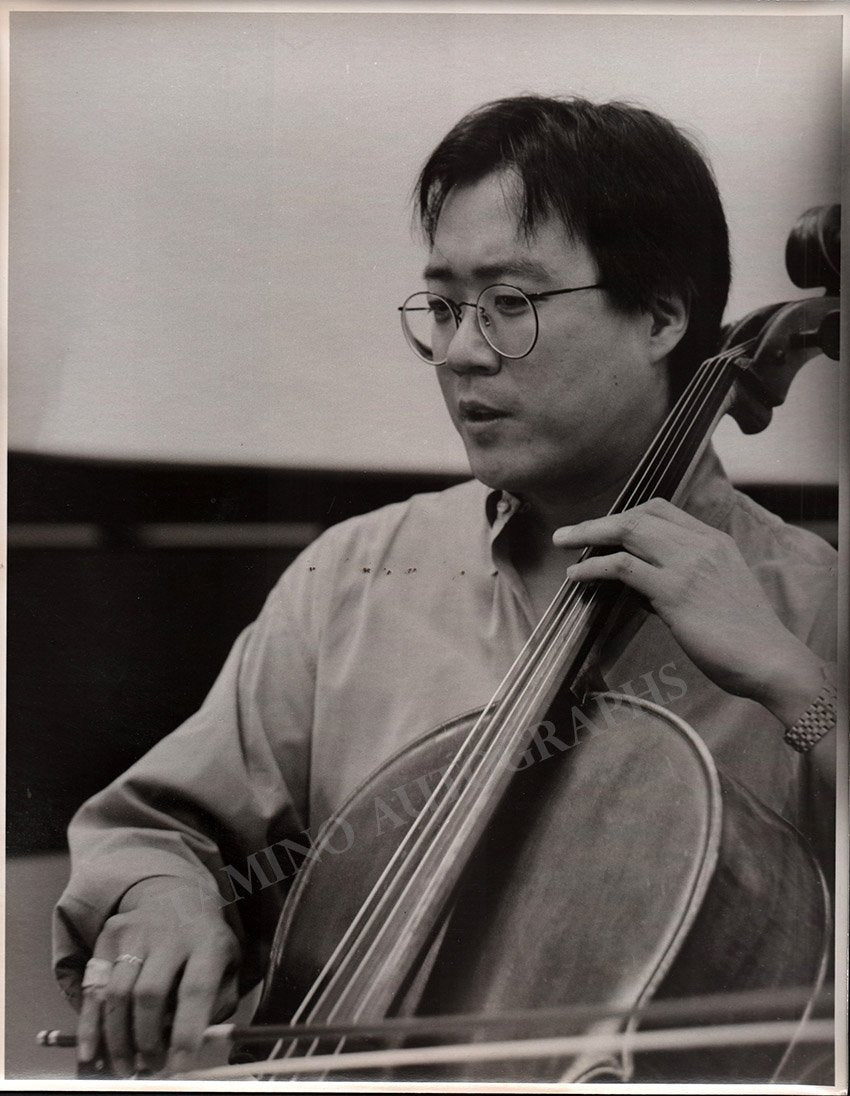 Original prints, each one signed on verso by music and art photographer Jim Arkatov, 2 dated by him in 1995, one in 2008. Photos show the famous cellist in rehearsal. Each one is 11 x 14 inches, in excellent condition.