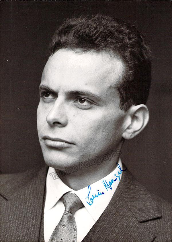 Signed photograph, shown as himself, young, taken at the Bayreuth Festival. Stamped on verso by photographer Siegfried Lauterwasser, Bayreuth. Size is 5 x 7 inches, slight crease on top left and some bending, otherwise in excellent condition.