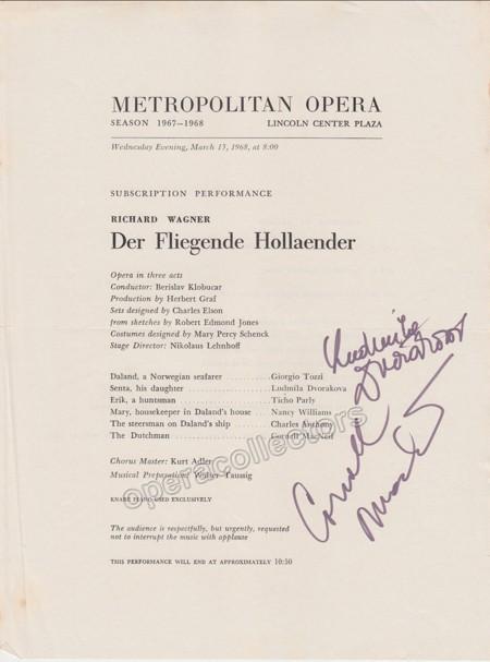 Der Fliegende Hollaender, Met Opera, Mar. 13th 1968, signed cast page (not full program), 8 x 11 inches (20 x 27.5 cm)