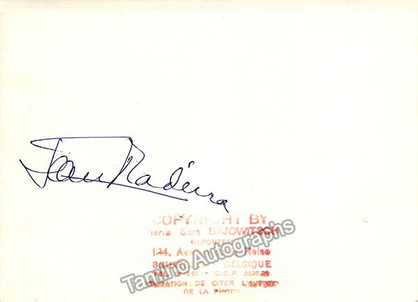Signed photograph, shown in role, signature on verso. Stamped on verso by photographer Sam Bajowitsch, Brussels. Size is 5 x 7 inches, very slight paper loss on edges, otherwise in very good condition.