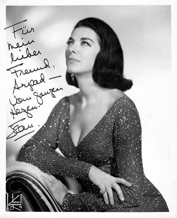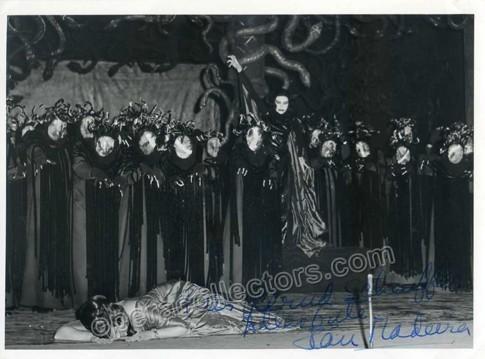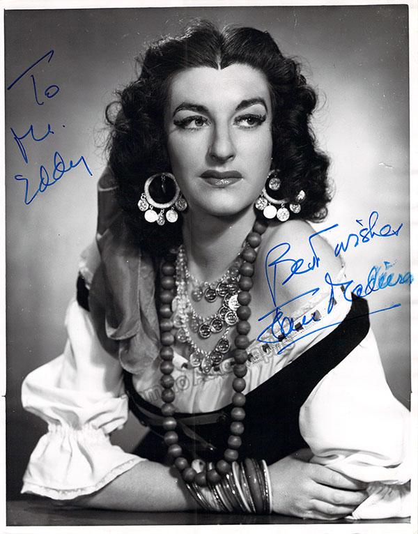 Signed photograph, shown as Bizet's Carmen, inscribed and dated in 1956. Printed signature on front of photographer James Abresch, New York. Size is 8 x 10 inches, several creases on edges and mounting traces on verso, otherwise in very good condition.