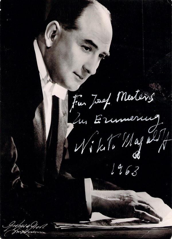 Georgian-Russian Pianist (1912-1992), well-known for his interpretations of Chopin´s music. Signed photo, shown with a score, inscribed and dated in 1963 - all in white ink. Size is 4 x 5.75 inches, in very good condition.